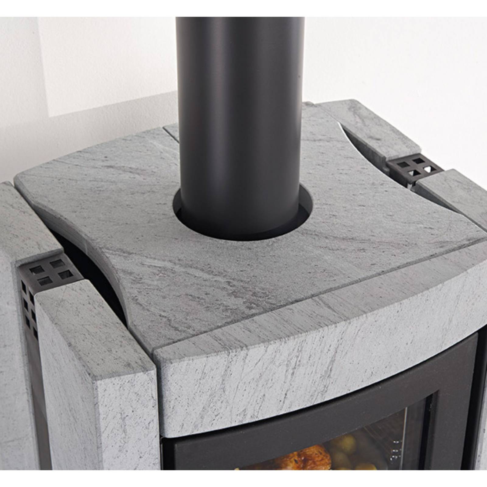 Revêtu de pierre ollaire, et pourvu d’un foyer en fonte et de sa vitre céramique résistante à 750°C, ce poêle est particulièrement résistant aux fortes chaleurs.
